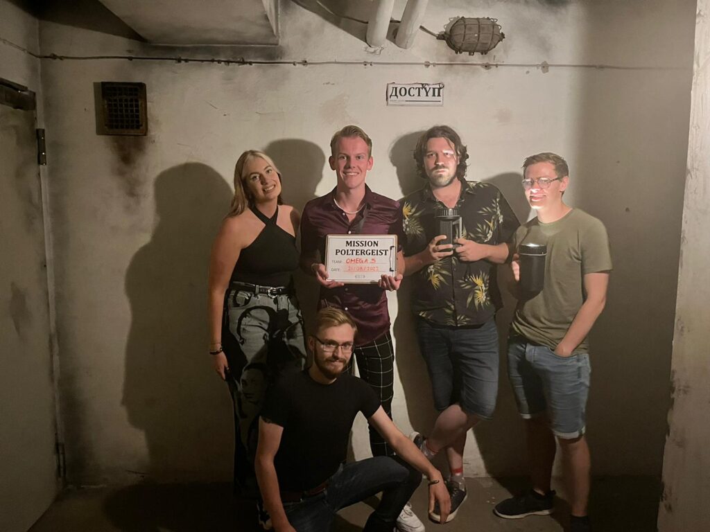 Der Poltergeist was voor ons eigenlijk de reden om naar Düsseldorf te gaan. De andere kamers vielen ons een beetje tegen, dus we hoopte ontzettend dat de finale van de dag op z’n minst een goede kamer zou zijn. Eerlijk gezegd, had ik me niet goed ingelezen wat precies het verhaal van deze kamer was. Aanrader is om dat wél te doen, want ik heb niet echt een heel sterk verhaal kunnen ontdekken tijdens het spelen. Onze gamehost nam ons mee naar de kelder van het gebouw en vertelde dat wij op onderzoek uit moesten gaan in de kelder, omdat zij het niet durfde. De elektriciteit was er uitgevallen en die moest gemaakt worden. Daarbij was er een geheime deur ontdekt. Zouden wij door die deur durven om onderzoek te gaan doen? Jawel, dat doen wij wél even 😅.