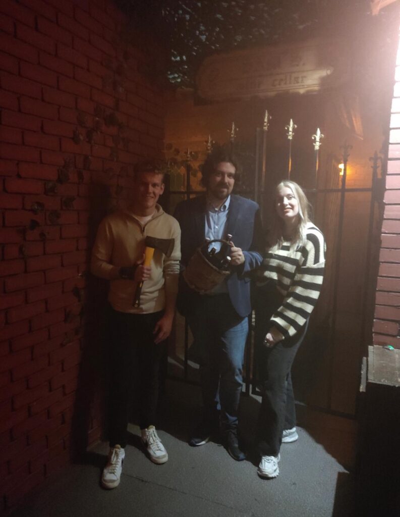We stonden voor de deur bij Last Wish en er werd opengedaan door een vrouw die vluchtig naar buiten kwam lopen en de deur achter haar dichttrok. ‘Just for your clarity’, zei ze, ‘there is a lot of physical contact in this escape room.’ Vervolgens riep ze dat als de bel zou gaan, we onszelf binnen zouden mogen laten. Ze deed de deur weer open, ging naar binnen en trok deze weer achter haar dicht. In andere reviews van The Cellar had ik iets gelezen over ‘overleg’ omtrent het fysieke contact. Bij ons was het louter een mededeling. Laat ik zeggen dat ze hiermee de toon goed wist te zetten, want bij ons alle brak nu het angstzweet uit én we begonnen afspraken te maken over wanneer we eruit zouden stappen én wanneer niet… Toen ging de bel 😅.