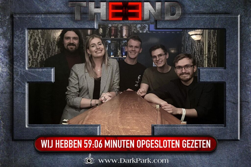 En met deze laatste aflevering komt ‘Rondje Darkpark’ tot een einde; en wat voor een einde! Een grande finale zou je kunnen zeggen. We – team ‘Nicht die Kinder!’ (5 personen) – hadden al twee kamers gespeeld op deze locatie en gingen een punt zetten achter ons DarkPark-avontuur door de laatste van het lijstje te spelen; ‘The End’ (hoe toepasselijk 😜).
